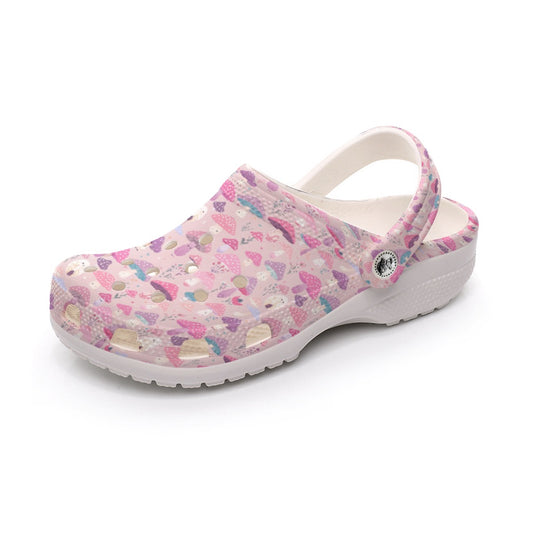 Pink Happy Mushroom Print Lightweight Garden Shoes Women's Classic Clogs