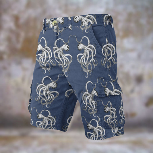 Vintage Ocean Blue Octopus Men’s Cargo Shorts Cruise Sailing Nautical Adventures