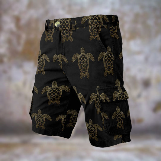 Black & Gold Sea Turtle Men’s Cargo Shorts Cruise Wear Beach Fits Tropical Chic Turtles