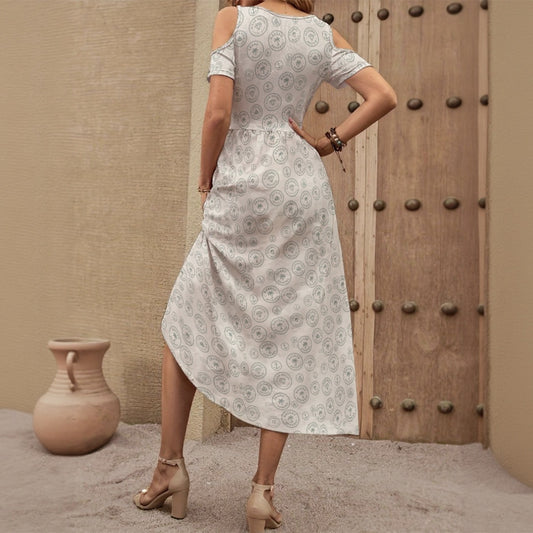 Peekaboo Shoulder Ocean Maxi Dress Octopus & Bubble Print Vacation Dress With Pockets