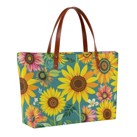 Green Summer Sunflower Print Women's Tote Bag Purse
