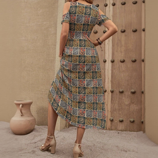 Vintage Sideshow “Three Boobed” Mermaid Nautical Dress Women's V-neck Off-shoulder Dress