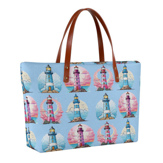 Baby Blue & Pink Lighthouse Print Purse Bag Made From Diving Cloth