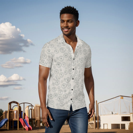 Men’s Sand Seashell Button-Up Shirt – Lightweight Beach & Cruise Vacation Top