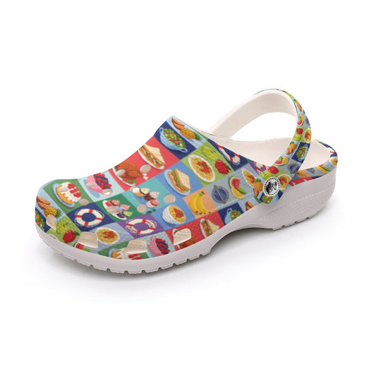 Women’s Colorful Cruise Buffet Clogs Fun Food Print Waterproof Travel Shoes for Cruise Pizza Snacks