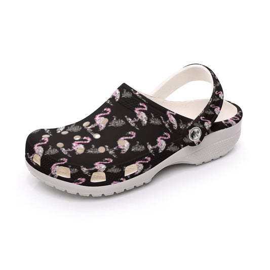 Women’s Black Flamingo Doodle Art Clogs Waterproof Cruise Travel Shoes for Beach Pool