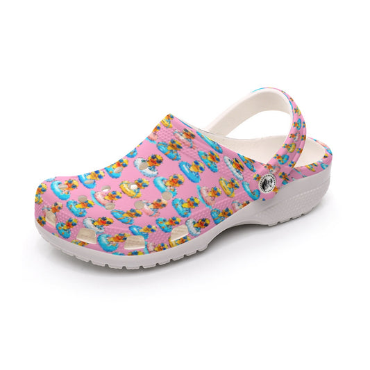 Colorful Rubber Ducky Feather Clogs Fun Cruise Ship Shoes Poolside & Vacation Comfort Clogs