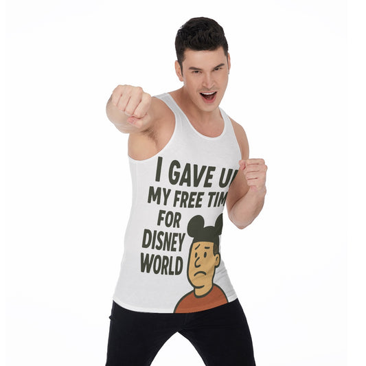 Men's Funny Tank Top with 'I Gave Up My Free Time for Disney World' Meme Print Hilarious Tee