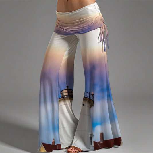Cape Cod Lighthouse Women's High Waist Wide Leg Pants Lightweight & Breathable Fabric