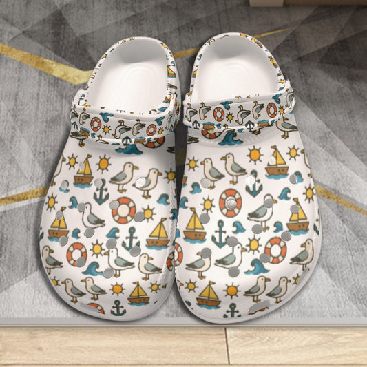 Cruise Life Women's Nautical Print Clogs - Lightweight EVA Comfort Sandals for Indoor & Outdoor Wear