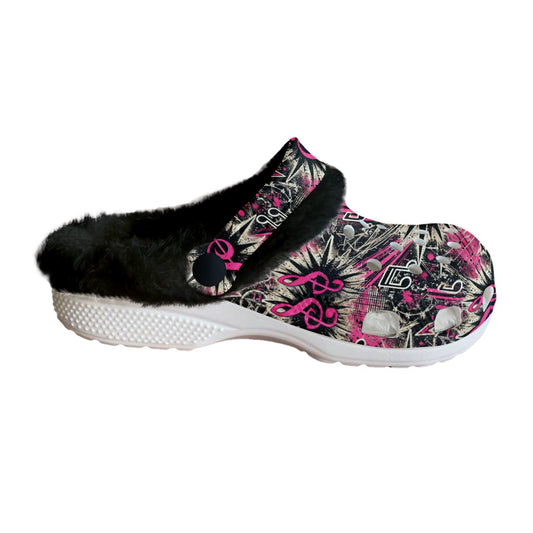 Women's Classic Pink Punk Rock Rockabilly Fleece Clogs Music Notes Design | Anti-Slip EVA