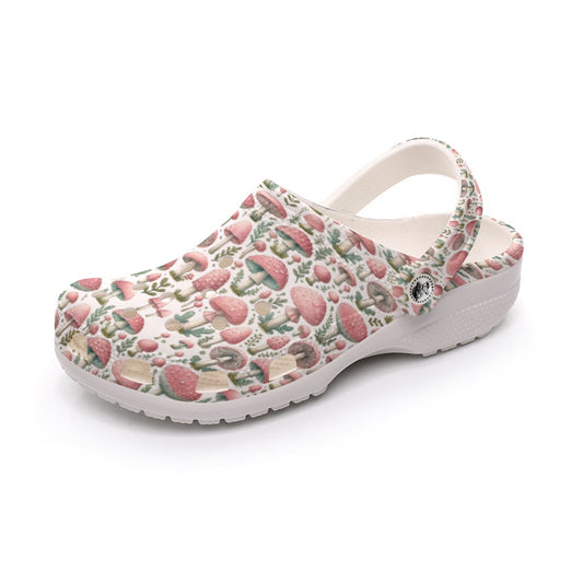 Women's White Mushroom Clogs - Lightweight EVA Sandals for Fall Gardening, Cottage Core Style
