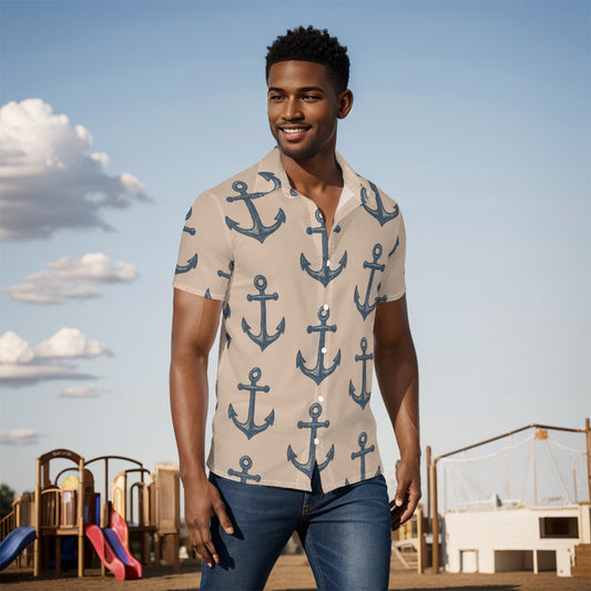 Ships Ahoy Anchor Nautical All-Over Print Men's Shirt Matching Cruise Vaca Couples Outfit