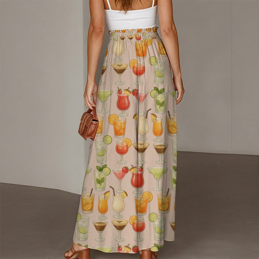 Mixed Drinks Women's Ruffled Wide-Leg PantsTropical Vacations Elegant & Comfortable Flare Pants
