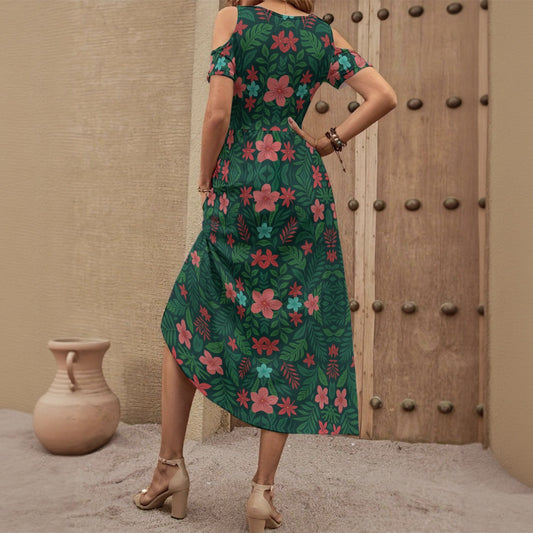 Relaxing Vacation Floral All-Over Print Women's V-neck Off-shoulder Dress Matching Couples Outfit