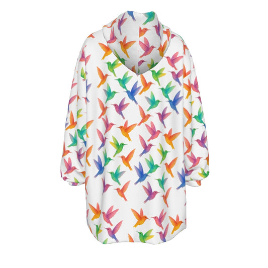 White Rainbow Garden Hummingbird Print Cozy Sweatshirt Sherpa Fleece Hoodie Blanket