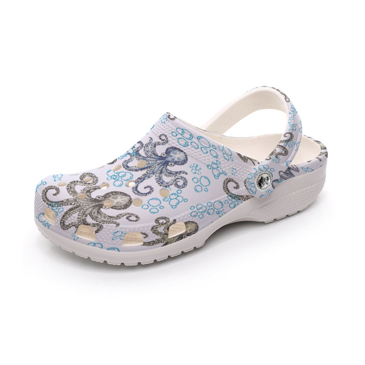 Blue Vintage Octopus Clogs with Bubbles Waterproof Cruise & Pool Shoes Print Women's Classic Clogs