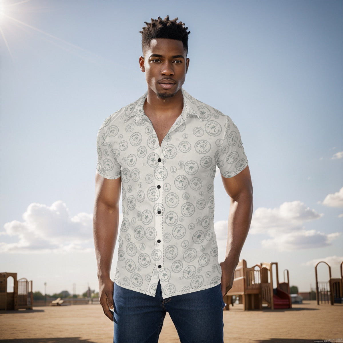 Featuring a beige and tan color palette with nostalgic postage stamp–style graphics, this lightweight shirt delivers effortless cruise elegance with a relaxed, wearable fit. It’s breathable, easy to pack, and designed for warm-weather cruising and resort destinations.