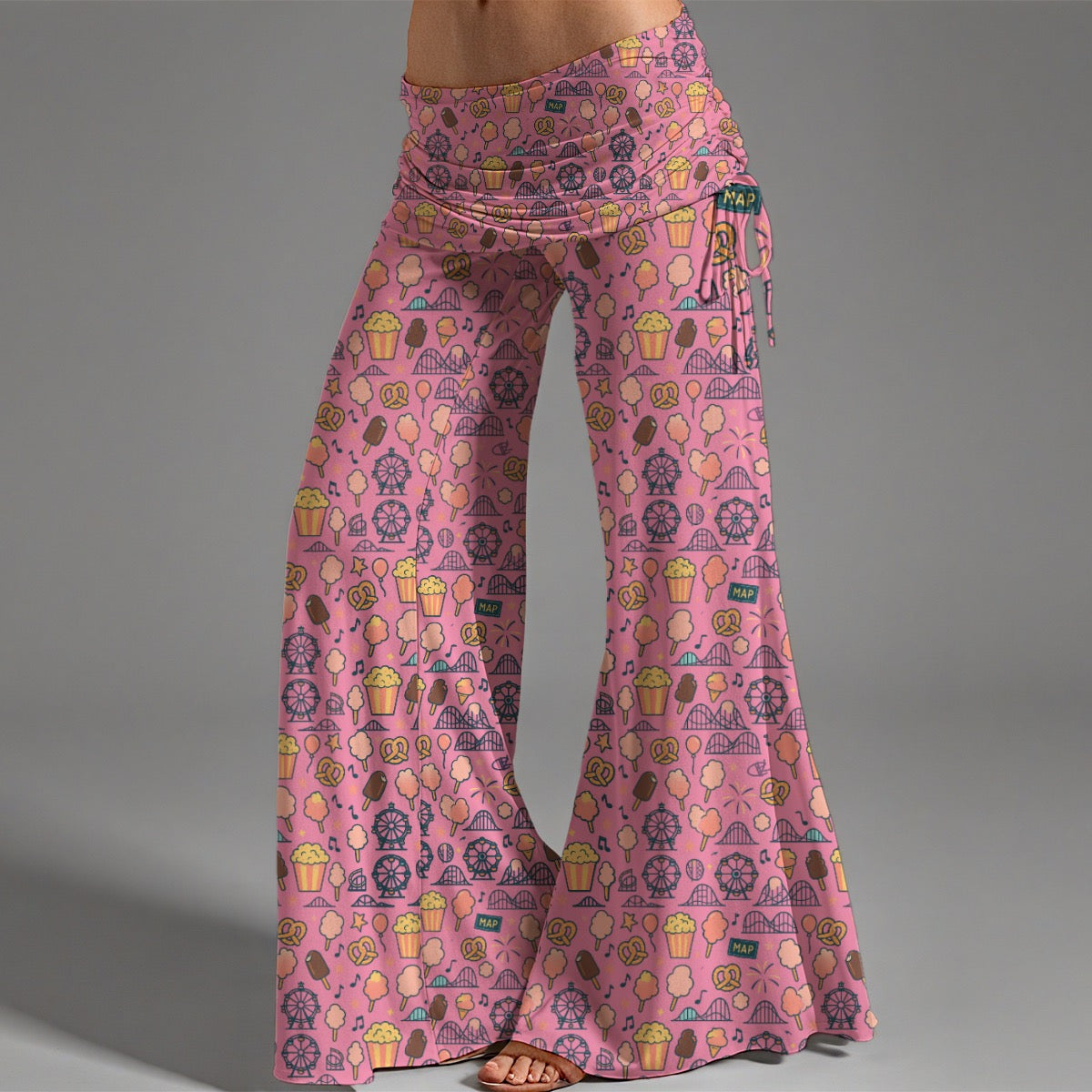 Stroll through a whimsical pink-themed park or enjoy a casual day out with these stylish high-waisted wide-leg pants, where girly charm meets comfort. Inspired by cotton candy, pretzels, and sweet travel snacks, the playful pattern adds a fun twist to your daily wardrobe, perfect for yoga, shopping, or brunch dates.